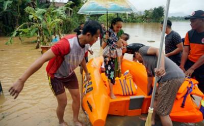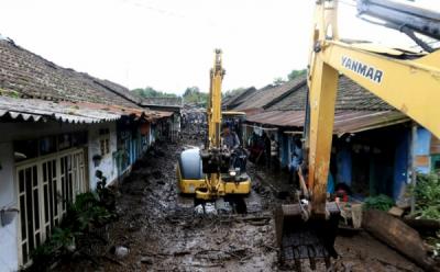 Dapur umum itu dibuka untuk membantu menyediakan makanan bagi warga terdampak banjir dan relawan yang bergotong royong membersihkan lokasi banjir bandang. (ANTARA FOTO/Budi Candra Setya) (ddk)