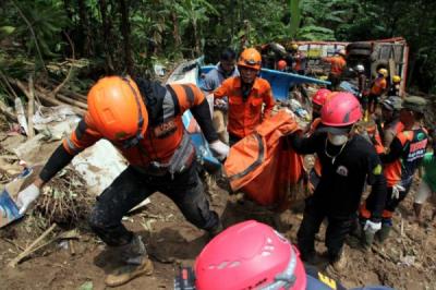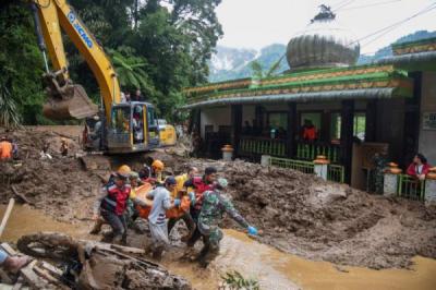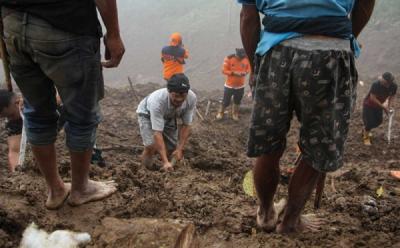 Data Tim Tanggap Bencana Serasan menyebutkan bencana tanah longsor di daerah tersebut terjadi di tujuh titik yang disebabkan curah hujan dengan intensitas tinggi. (ANTARA FOTO/Teguh Prihatna) (ddk)