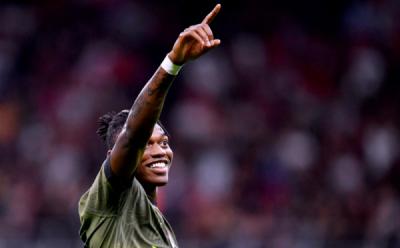 Pemain AC Milan Rafael Leao melakukan selebrasi usai mencetak gol ke gawang Napoli dalam laga lanjutan Liga Italia di Stadio Diego Armando Maradona, Naples, Senin (3/4/2023) dini hari WIB. AC Milan yang bertandang ke Napoli menang telak dengan skor 4-0, gol dicetak oleh Rafael Leao menit ke-17 dan 59, Brahim Diaz menit ke-25 dan Alexis Saelemaekers menit ke-67.
