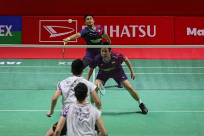 Ekspresi Pramudya/Yeremia Kalahkan The Daddies di Indonesia Open 2023