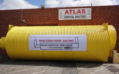 Seorang warga memengang senter untuk penerangan saat memasuki bunker.