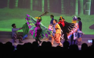 Sejumlah anak mementaskan drama musikal berjudul Kasih Menembus Batas di Balai Sarbini, Setiabudi, Jakarta, Kamis (14/12/2023). Drama musikal yang diikuti lebih dari 100 anak-anak difabel dan non difabel tersebut menceritakan sekumpulan anak yang ingin mengutamakan kebersamaan dalam keberagaman budaya dan perbedaan agama dengan menjunjung nilai-nilai saling menghargai dan saling menghormati. ANTARA FOTO/Rifqi Raihan Firdaus/foc.