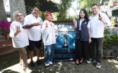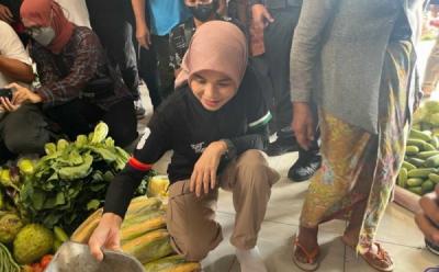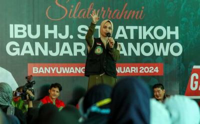 Blitar - Istri Calon Presiden nomor urut 3 Ganjar Pranowo yang juga diusung oleh Partai Perindo, Siti Atikoh Suprianti mengunjungi Kampung Coklat yang berada di Desa Plosorejo, Kademangan, Blitar, Jawa Timur, Sabtu (27/1/2024). Atikoh menyebut Kampung Coklat bisa menjadi contoh bentuk kedaulatan pangan.