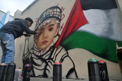 Mural Wajah Benjamin Netanyahu dan Joe Biden di Grogol