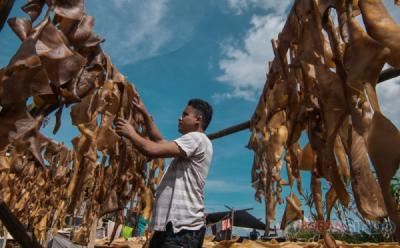 Pengepul memilah kulit hewan kurban yang masih bagus di pinggir Jalan KH Mas Mansyur, Tanah Abang, Jakarta, Selasa (18/6/2024). Momentum Idul Adha menjadi rezeki bagi pengepul musiman kulit hewan kurban dengan membeli kulit hewan kurban dari masyarakat seharga Rp20 ribu perlembar kulit kambing, Rp35 ribu perlembar kulit domba, dan Rp6 ribu perkilo kulit sapi itu untuk dijadikan kerupuk, jaket dan beduk.