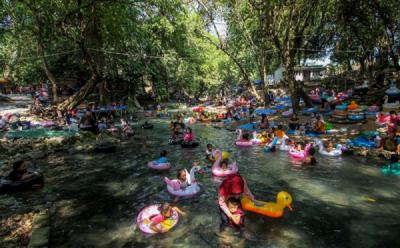 Pengunjung menikmati pemandangan di Puncak Lolai, Toraja Utara, Sulawesi Selatan, Senin (29/7/2024). Pemerintah setempat melakukan penataan kawasan wisata alam tersebut agar lebih produktif serta ramah lingkungan berbasis kearifan lokal. ANTARA FOTO/Sakti Karuru/aww.