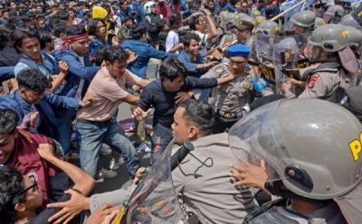 Dalam aksinya, para mahasiswa merobohkan gerbang gedung DPRD di sisi utara. Polisi pun terpaksa menembakkan gas air mata saat mahasiswa berupaya menembus barikade. Sejumlah mahasiswa mengalami luka-luka akibat tembakan gas air mata.