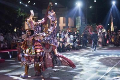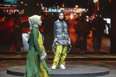 Model memperagakan busana batik disela-sela konferensi pers Tutur Batik: Jejak Artistik Para Penjaga Tradisi Batik Jawa Barat di Galeri Indonesia Kaya, Jakarta, Selasa (15/10/2024). Dalam rangka memperingati Hari Batik Nasional, Yayasan Batik Jawa Barat (YBJB) yang didukung Bakti Budaya Djarum Foundation, Kemendikbud dan Komisi X DPR RI menggelar kegiatan Tutur Batik: Jejak Artistik Para Penjaga Tradisi Batik Jawa Barat serta menghadirkan film dokumenter yang mengangkat kekayaan warna dalam setiap karya batik dari Jawa Barat.