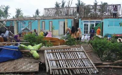 Foto udara kondisi kerusakan atap Stadion Wibawa Mukti di Cikarang Pusat, Kabupaten Bekasi, Jawa Barat, Selasa (22/10/2024). Kerusakan atap Stadion Wibawa Mukti bagian barat karena diterjang angin kencang disertai hujan pada (21/10) pukul 14.30 WIB dan Pemerintah setempat bersama Kementerian Pekerjaan Umum dan Perumahan Rakyat (PUPR) tengah melakukan inventarisasi total kerugian dari kerusakan atap stadion tersebut. ANTARA FOTO/Fakhri Hermansyah/nym.