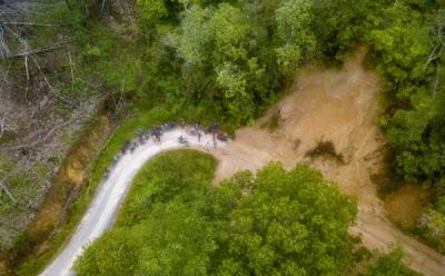 Foto udara Danau Lingkat di Lempur, Kerinci, Jambi, Senin (18/11/2024). Danau yang berada di kawasan Hutan Adat Lekuk 50 Tumbi Lempur tersebut merupakan salah satu potensi wisata setempat dengan kunjungan rata-rata per tahun mencapai 6 ribu orang.