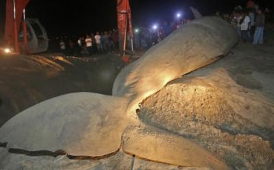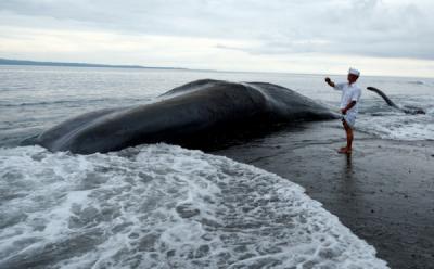 Bangkai Paus Hidung Botol Terdampar di Pantai Jember