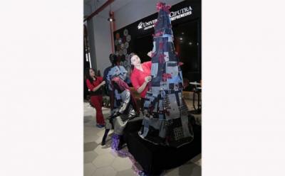 PALANGKA RAYA - Warga berswafoto dengan latar belakang hiasan pohon natal di kawasan Bundaran Besar, Palangka Raya, Kalimantan Tengah, Senin (16/12/2024). Pemprov Kalteng memasang pohon dan hiasan natal sebagai tempat photobooth di kawasan tersebut guna menyambut perayaan Hari Natal dan Tahun Baru 2025. ANTARA FOTO/Auliya Rahman/Spt.