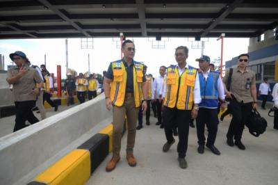 KLATEN - Petugas mengatur arus lalu lintas kendaraan di gerbang Tol Prambanan, Jogonalan, Klaten, Jawa Tengah, Minggu (22/12/2024). Berdasarkan data PT Jasamarga Jogja Solo (JMJ) arus lalu lintas yang melewati jalur tol fungsional Klaten-Prambanan baik masuk dan keluar dari gerbang Tol Prambanan mulai pukul 06.00 WIB hingga 18.00 WIB sebanyak 22.299 kendaraan.