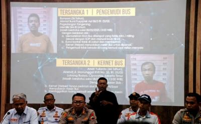 MALANG - Sejumlah petugas melakukan proses evakuasi bus pariwisata yang terlibat kecelakaan di KM 77+200 Jalan Tol Pandaan-Malang, Lawang, Kabupaten Malang, Jawa Timur, Senin (23/12/2024). Berdasarkan data temuan awal Polres Malang, kecelakaan bus pariwisata dan truk tersebut menyebabkan empat orang meninggal dunia. ANTARA FOTO/Ahmad Prabowo/wpa.