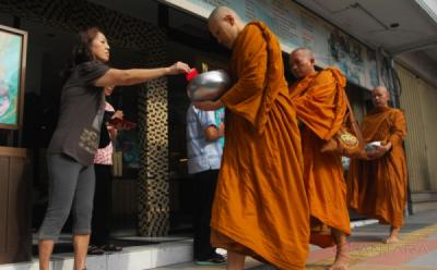 TANGERANG - Warga menyambut sejumlah Biksu Thudong dalam rangkaian Pabajja Samanera di Kota Tangerang, Banten, Minggu (29/12/2024). Sejumlah Biksu Thudong berjalan bersama peserta Samanera dari Perguruan Budhi Dharma Tangerang menuju Vihara Boen Tek Bio untuk melakukan prosesi Pindapata.