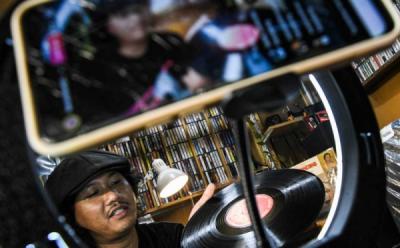 JAKARTA - Calon pembeli memutar kaset pita di Psychocandy Records, Jakarta, Jumat (3/1/2025). Sejumlah musisi tanah air kembali meluncurkan album dalam bentuk kaset pita dikarenakan harga produksinya lebih murah, namun terkendala keterbatasan bahan baku sehingga mengakibatkan penundaan produksi. ANTARA FOTO/Muhammad Adimaja/foc.