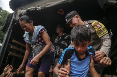 MALUKU UTARA - Sejumlah pelajar melintas di jalan umum yang tertutup abu vulkanik dampak erupsi Gunung Ibu di Desa Tobaro, Kabupaten Halmahera Barat, Maluku Utara,Rabu (15/1/2025). Erupsi Gunung Ibu pada Rabu (15/1) pukul 07.11 WIT dengan semburan abu vulkanik setinggi 4.000 dari atas puncak menyebabkan sejumlah desa di Kecamatan Ibu Utara mengalami hujan abu, sementara gunung tersebut masih menunjukkan peningkatan aktivitas dan PVMBG menaikan status Gunung Ibu dari Siaga Level III menjadi Awas Level IV. ANTARA FOTO/Andri Saputra/rwa.