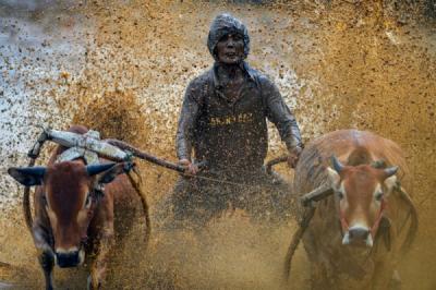 SIGI - Peserta menggiring sapinya menuju garis start pada Posilumba Japi di Desa Kalukubula, Sigi, Sulawesi Tengah, Kamis (15/1/2025). Selain dilaksanakan sebagai tradisi setiap usai panen, adu kecepatan sapi yang digelar Pemkab Sigi dan menyediakan hadiah ratusan juta rupiah itu, juga digelar sebagai salah satu daya tarik wisata untuk berkunjung ke daerah tersebut. ANTARA FOTO/Basri Marzuki/foc.