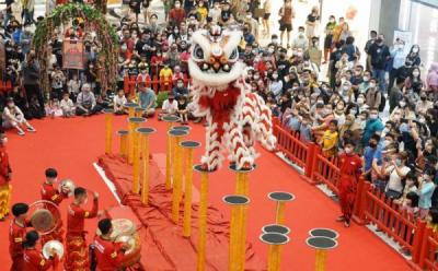 Atraksi Barongsai di Pusat Perbelanjaan di Surabaya