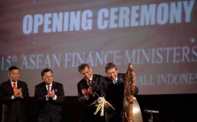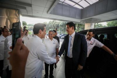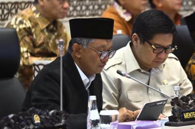 JAKARTA - Menteri Keuangan Sri Mulyani Indrawati (kedua kanan) bersalaman dengan Wakil Ketua DPR Sufmi Dasco Ahmad (kedua kiri) disaksikan oleh Mensesneg Prasetyo Hadi (kanan) dan Wakil Ketua DPR Adies Kadir (kiri) usai memberikan keterangan pers terkait efisiensi anggaran di lingkungan Kementerian/Lembaga di Komisi III DPR, Kompleks Parlemen, Senayan, Jakarta, Jumat (14/2/2025). Dalam keterangan pers tersebut Sri Mulyani menyampaikan bahwa tidak ada pemutusan hubungan kerja (PHK) tenaga kerja honorer di lingkungan Kementerian dan Lembaga.