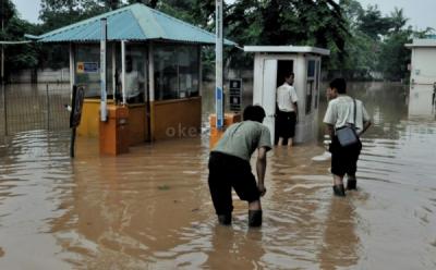 Hujan deras mengguyur sejak Senin malam menyebabkan banjir di sejumlah kawasan Jabodetabek.