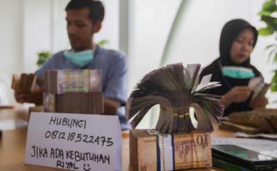 JAKARTA - Warga menunjukan uang pecahan baru saat layanan penukaran uang dari mobil kas keliling Bank Indonesia di Masjid Al Azhar, Jakarta, Selasa (4/3/2025). Bank Indonesia bekerja sama dengan perbankan menyediakan layanan penukaran pecahan uang rupiah baru di seluruh Indonesia dengan uang layak edar (ULE) sebesar Rp 180,9 triliun dalam rangka memenuhi kebutuhan masyarakat pada bulan Ramadhan dan Idul Fitri 1446 H.