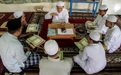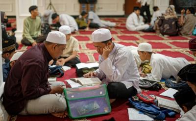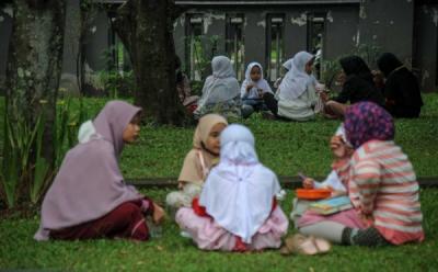 JAKARTA - Sejumlah anak mengikuti pesantren kilat di Ruang Publik Terpadu Ramah Anak (RPTRA) Malinjo, Jakarta, Selasa (11/3/2025).