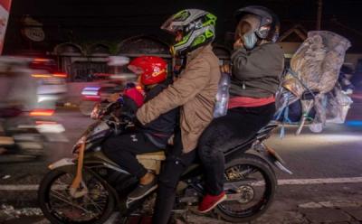 Masyarakat yang mudik mengunakan roda dua mengatakan lebih memilih melakukan perjanalan pada malam hari agar tidak kepanasan.