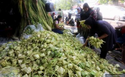 Menjelang Hari Raya Idul Fitri penjual kulit ketupat musiman mulai kebanjiran pesanan salah satunya pedagang ketupat di kawasan Palmerah Jakarta.