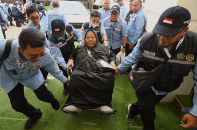 PALEMBANG - Jemaah Haji Kloter Pertama Embarkasi Palembang asal Kabupaten OKU Timur tiba di Asrama Haji Sumsel Jalan Letjen Harun Sohar Palembang, Jumat (2/5/2025).