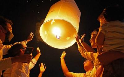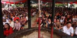 PALEMBANG - Ratusan umat Buddha Palembang mengikuti upacara Tri Suci Waisak 2025 di Maha Wihara Dharmakirti Palembang, Senin (12/5/2025).