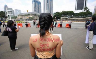 JAKARTA - Aktivis dari Wahana Lingkungan Hidup Indonesia (WALHI) menggelar aksi unjuk rasa di Gerbang Pancasila, Kompleks Parlemen, Jakarta, Jumat (23/5/2025).