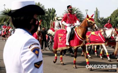 Bendera Merah Putih Dibawa Menuju Istana Merdeka Menggunakan Kereta Kencana