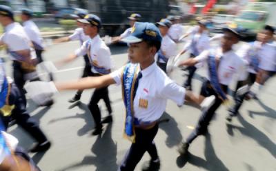 Polisi Halau Massa dari Depan DPR ke Jalan Gerbang Pemuda dalam Aksi Tolak Kenaikan Gaji Anggota Dewan