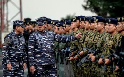 JAKARTA - Anggota Pencinta Alam SMAN 97 (Palastu) mendayung perahu disela-sela latihan dan peresmian perahu karet Palastu di Waduk Brigif, Jakarta, Sabtu (6/9/2026).