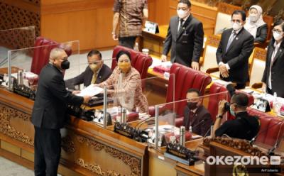 JAKARTA - Menteri Hukum Supratman Andi Agtas (kedua kiri) menyerahkan berkas pendapat akhir kepada Ketua DPR Puan Maharani (kanan) yang disaksikan oleh Wakil Ketua DPR Adies Kadir (kedua kanan) dan Saan Mustopa (kiri) pada Rapat Paripurna ke-8 DPR RI Masa Persidangan II Tahun Sidang 205-2026 di Kompleks Parlemen, Senayan, Jakarta, Selasa (18/11/2025). Dalam rapat tersebut DPR menyetujui Rancangan Undang-Undang (RUU) tentang Perubahan atas Undang-Undang Nomor 8 Tahun 1981 tentang Kitab Undang-Undang Hukum Acara Pidana (KUHAP) untuk disahkan menjadi undang-undang.