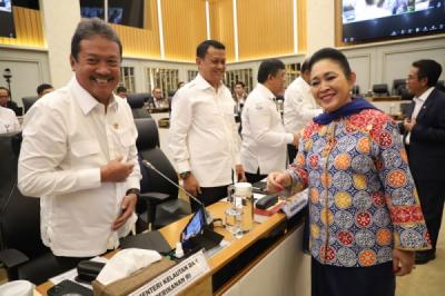 JAKARTA - Menteri Koordinator Pangan Zulkifli Hasan bersama Menteri Kelautan dan Perikanan Sakti Wahyu Trenggono dan Ketua Komisi IV DPR Titiek Soeharto melepas karnaval memperingati Hari Ikan Nasional 2025 (Harkannas) saat CFD Jakarta, Minggu (23/11/2025).