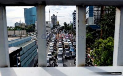 Kemacetan terpantau di beberapa titik utama, salah satunya di Jalan Jenderal Gatot Subroto, Jakarta. Arus kendaraan bergerak padat dan melambat, terutama pada jam sibuk pagi, baik dari arah barat maupun timur. Kendaraan pribadi, angkutan umum, serta bus sekolah mendominasi lalu lintas di kawasan tersebut.