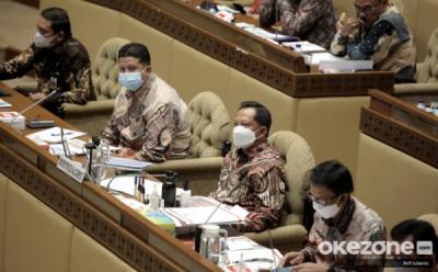 JAKARTA - Suasana rapat kerja (raker) Komisi II DPR dengan Menteri ATR/BPN Nusron Wahid (kedua kanan) bersama Menteri PANRB Rini Widyantini (kanan) dan Wakil Menteri Dalam Negeri Bima Arya (ketiga kanan) di Kompleks Parlemen, Senayan, Jakarta, Senin (19/1/2026). Rapat tersebut membahas pengawasan terhadap mitra dalam penanganan pascabencana di Aceh, Sumatera Utara, dan Sumatera Barat.