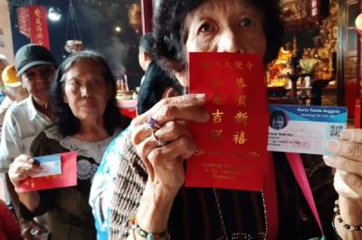 JAKARTA - Pengunjung melihat pernak-pernik Imlek di pusat perbelanjaan Lippo Mall Puri, Jakarta, Jumat (30/1/2026).