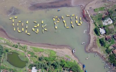 Aksi mereka menuntut kepada pemerintah untuk membatalkan pembangunan PLTU dengan menggunakan bahan bakar batubara di Kabupaten Batang, Jawa Tengah.