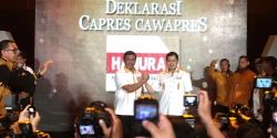 Ketua Umum Partai Hanura Wiranto bersama Ketua Soegeng Sarjadi Syndicate (SSS) Soegeng Sarjadi memberikan keterangan pers usai memberikan kuliah umum dengan tema "Kandidat Presiden 2014" yang selenggarkan Soegeng Sarjadi Syndicate (SSS), Jakarta, Rabu (27/3/2013). Wiranto banyak mengkritik penyelesaian berbagai masalah bangsa dan negara yang dinilai lamban, seperti penyerangan LP Sleman beberapa waktu lalu.