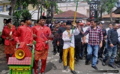 Sebuah bajaj membawa sepasang Ondel-ondel saat melintasi Jalan Lapangan Banteng Barat, Jakarta Pusat, Kamis (8/11/2012). Ondel-ondel tersebut menuju kawasan Monumen Nasional (monas) yang selanjutnya dibawa berkeliling komunitas pengamen dari kawasan Jiung Kemayoran.
