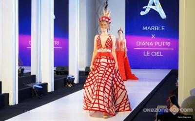 Model memeragakan busana rancangan desainer asal Thailand Ek Thongprasert pada gelaran Fashion Nation di Senayan City, Jakarta, Kamis (9/4/2015).